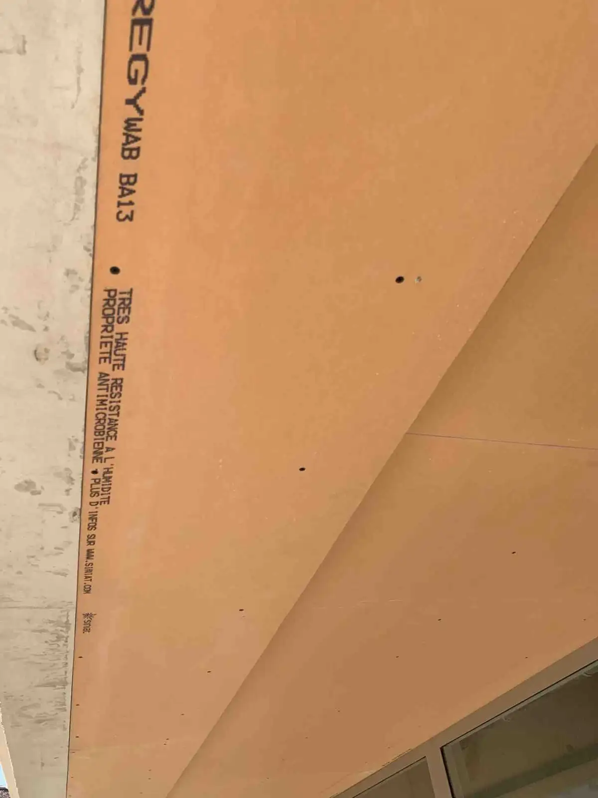 Une très haute résistance à l’eau et à l’humidité ambiante de la plaque, de l’enduit, de la bande, des ossatures, et des vis du système PRÉGYWAB. Les plaques de couleur orange spécifique facilitent l’identification sur le chantier. Homogénéité de système avec les autres ouvrages en plaques de plâtre. Plaque hydrofugée et haute dureté. L'isolant laine de verre en épaisseur 100mm est intégré dans le faux plafond pour assurer une isolation thermique optimale.